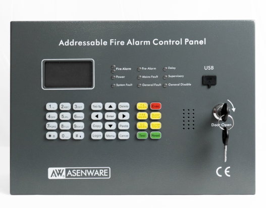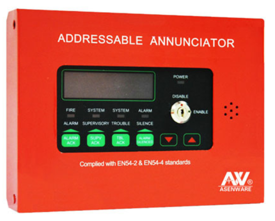 Asenware Adreslenebilir Yangın Alarm İhbar Paneli, Yangın Alarm Sistemi Yerleşim planına göre sahada yapılandırılabilen 24 Bölgeli bir paneldir. Klavye, Güç LED’i ve sesli uyarı içerir. Yangın Alarm İhbar Paneli, 24 bölgeli panele eklenebilir.